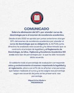 Lunes 13 de mayo del 2024. El Colegio de Abogados y Abogados de Costa Rica para el conocimiento público, informa que, la Presidencia de la…
