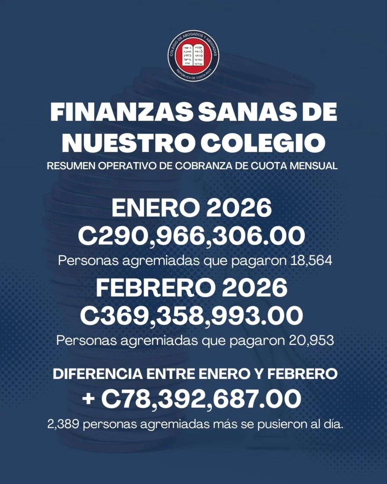 Los resultados del reporte de gestión de cobro correspondiente a enero y febrero de 2026 reflejan un avance importante en la recuperación de morosidad y en la estabilidad financiera de la institución. Gracias a mejoras operativas y administrativas implementadas recientemente, se logró recuperar ₡78.392.687 adicionales en febrero respecto a enero, y 2.389 personas agremiadas regularizaron su situación durante este período.