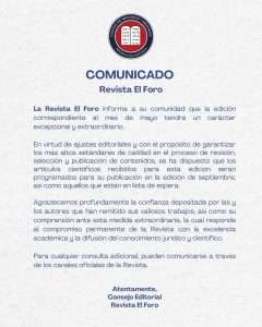 La Revista El Foro informa a su comunidad que la edición correspondiente al mes de mayo tendrá un carácter excepcional y extraordinario. En virtud de…